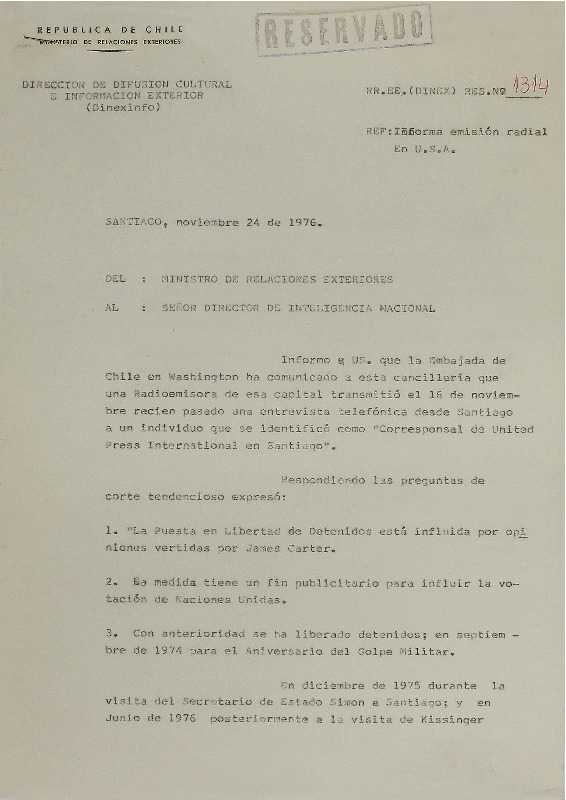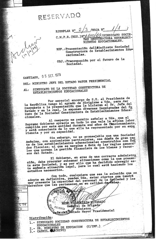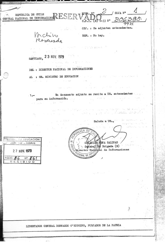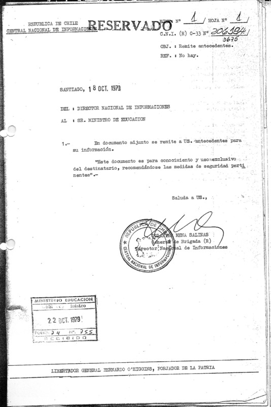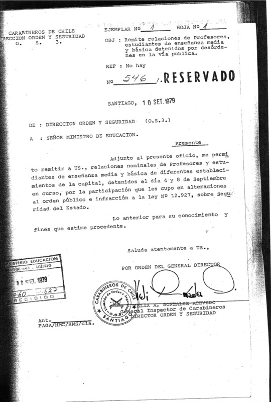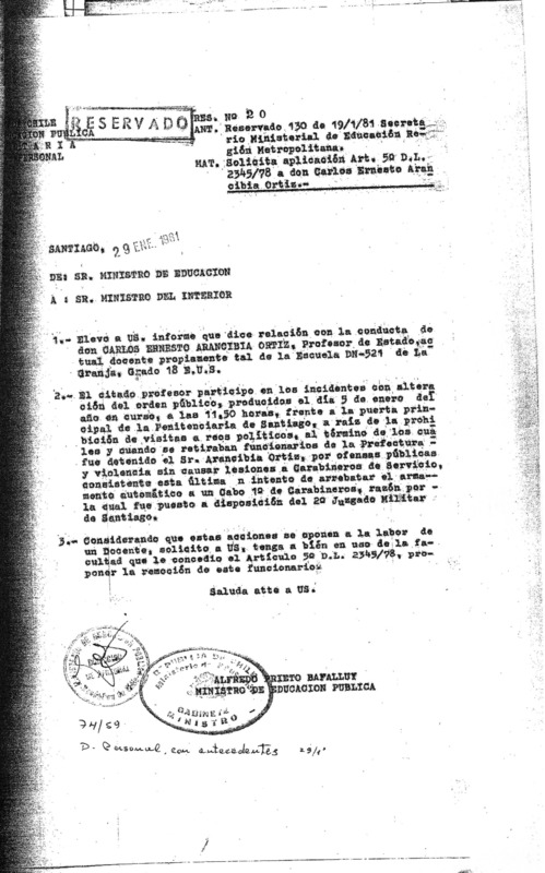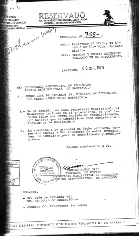 Carta del Director del Liceo Juan Antonio Ríos, Carlos Marín Neira