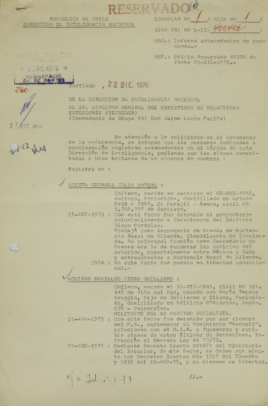 DINA establece procedimiento para solicitar antecedentes de personas
