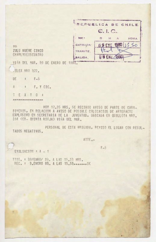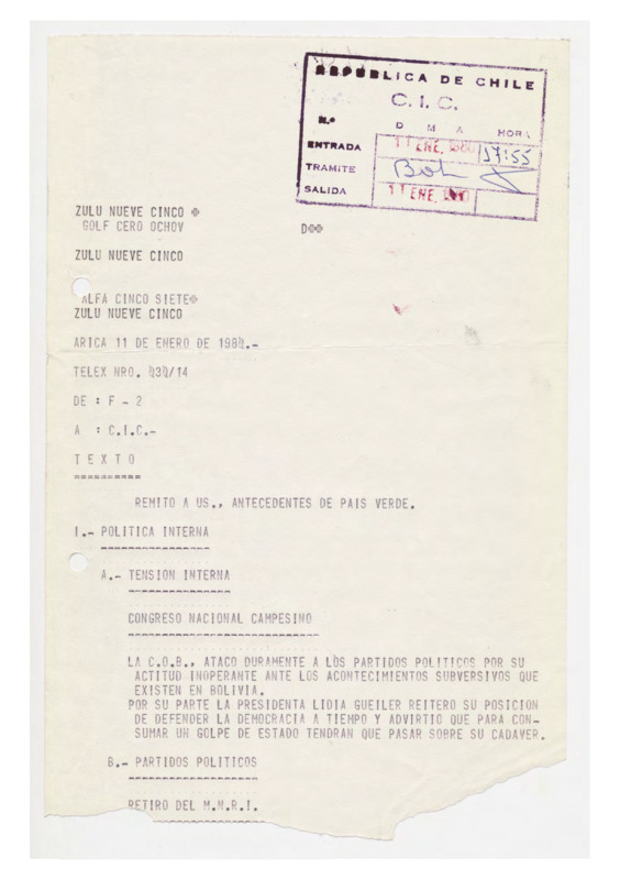 Informe de Inteligencia acerca de Bolivia - 14 enero 80