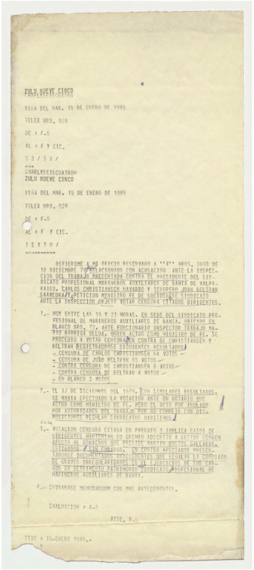 Voto de censura en Sindicato de Marineros Auxiliares de Bahía