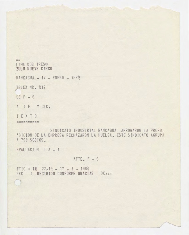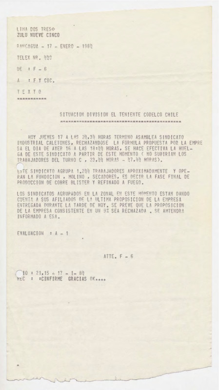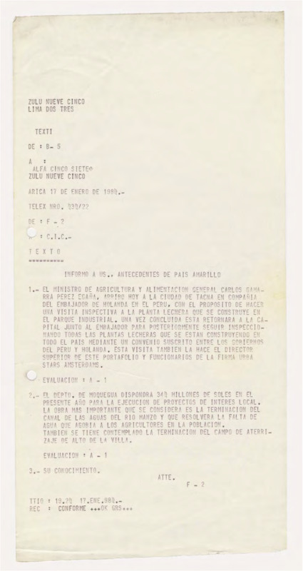 Informe de Inteligencia acerca de Perú - 17 enero 80