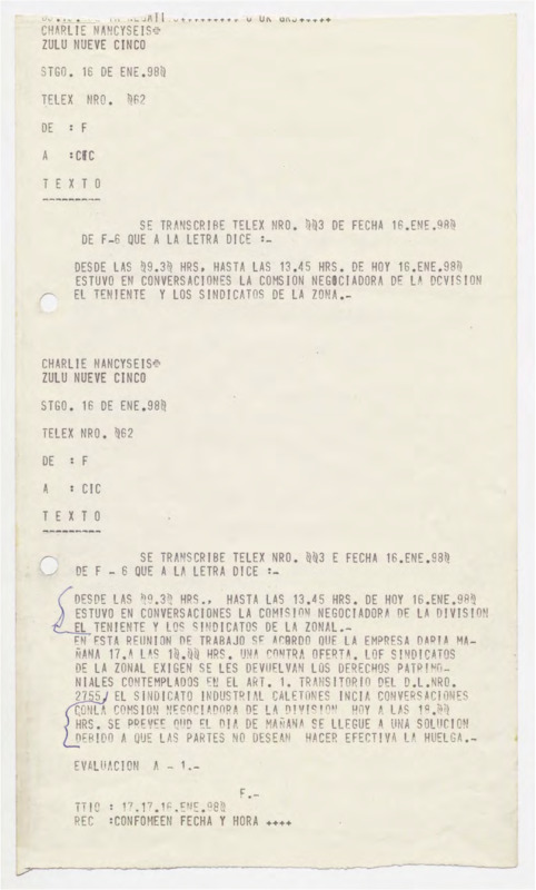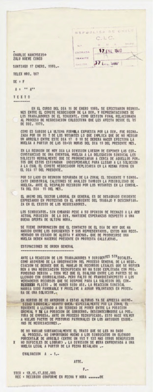 Negociaciones en la Mina El Teniente