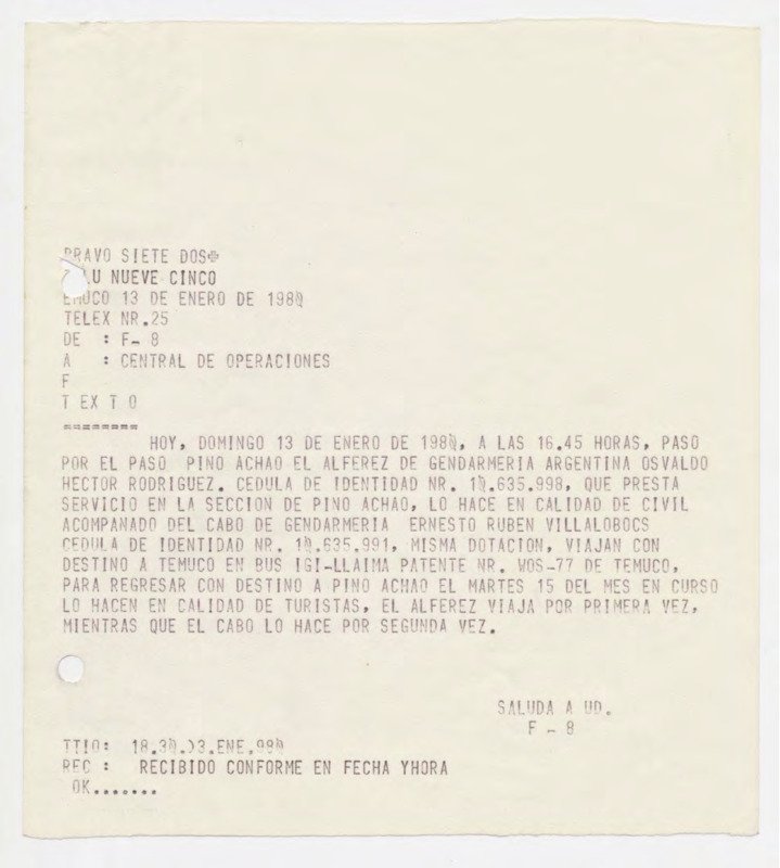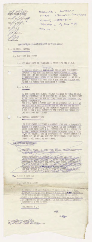 Informe de Inteligencia acerca de Bolivia - 16 enero 80