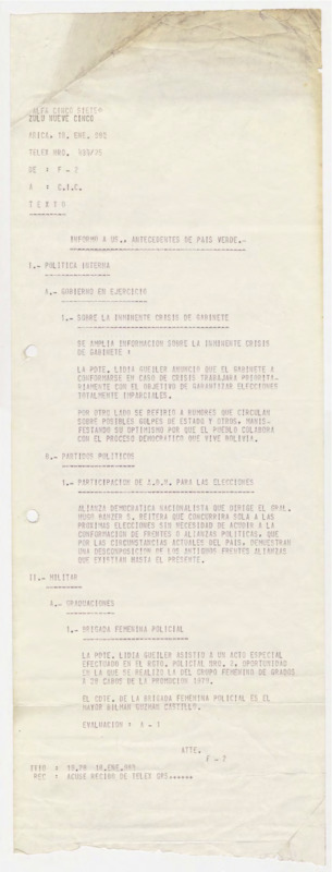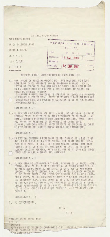 Informe de Inteligencia acerca de Perú - 16 enero 80