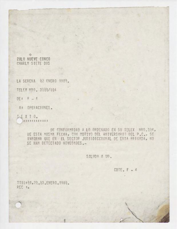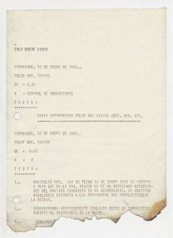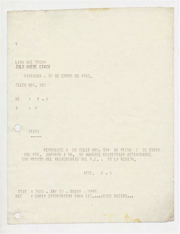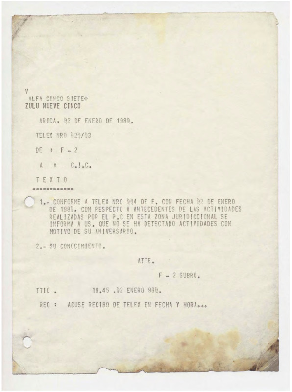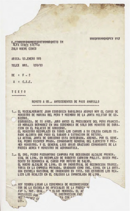 Informe de Inteligencia acerca de Perú - 3 enero 80