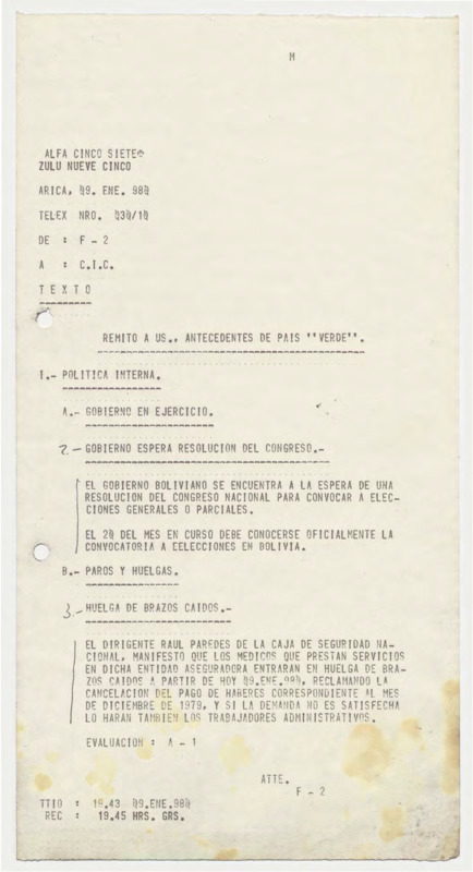 Informe de Inteligencia acerca de Bolivia - 3 enero 80