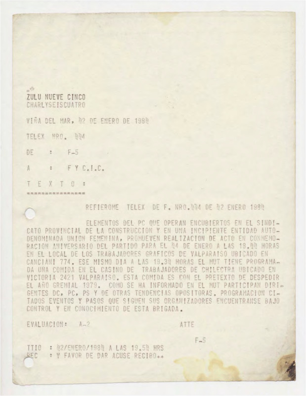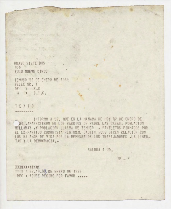 Panfletos del Partido Comunista en Temuco