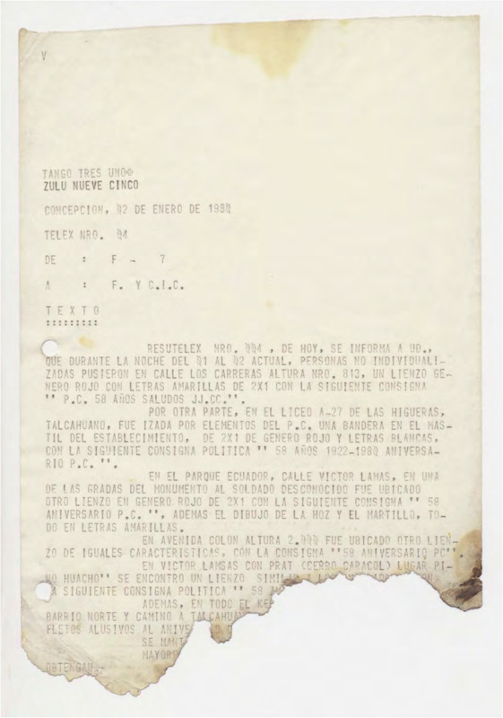 Panfletos del Partido Comunista en su Aniversario en barrios de Temuco I