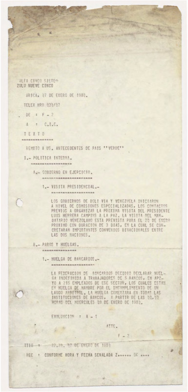 Informe de Inteligencia acerca de Bolivia - 7 enero 80 - I