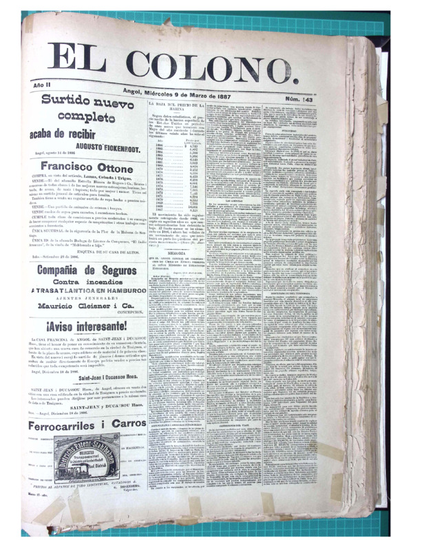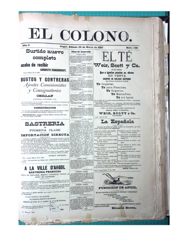 En el caso del periódico El Colono, se trata de una publicación regional editada en la ciudad de Angol durante la segunda mitad del siglo XIX, en el contexto del proceso de ocupación estatal del territorio mapuche, conocido como la "Pacificación de la Araucanía". Este periódico constituye una fuente primaria de alto valor documental que testimonia, desde la prensa local, los discursos oficiales y sociales en torno a la colonización, la salud pública, la inmigración, y la modernización del sur de Chile.