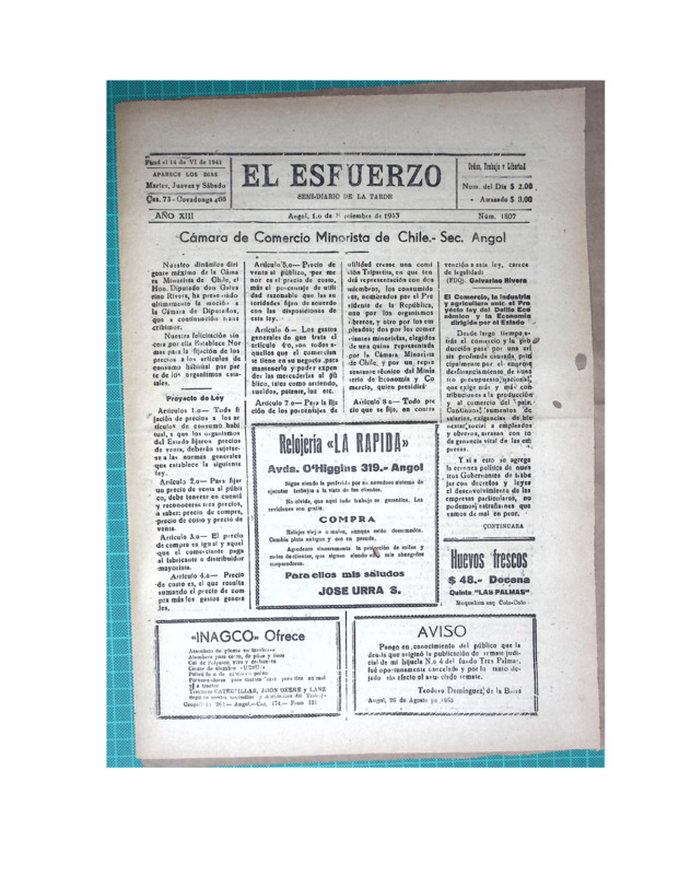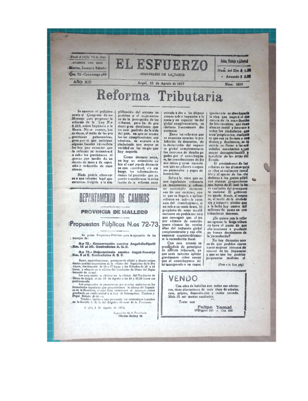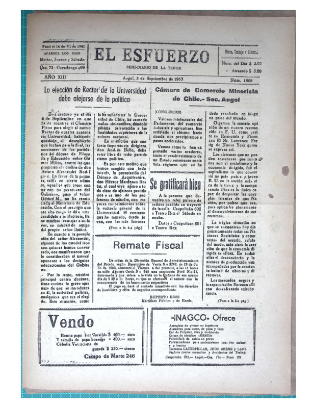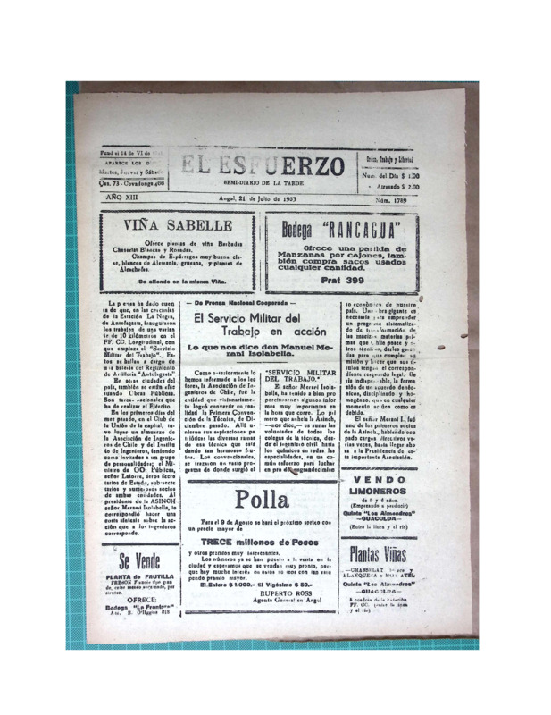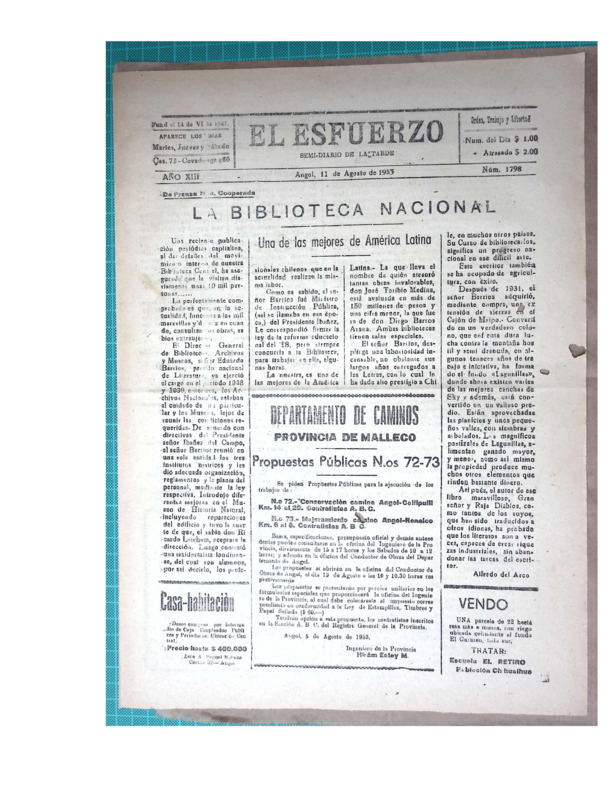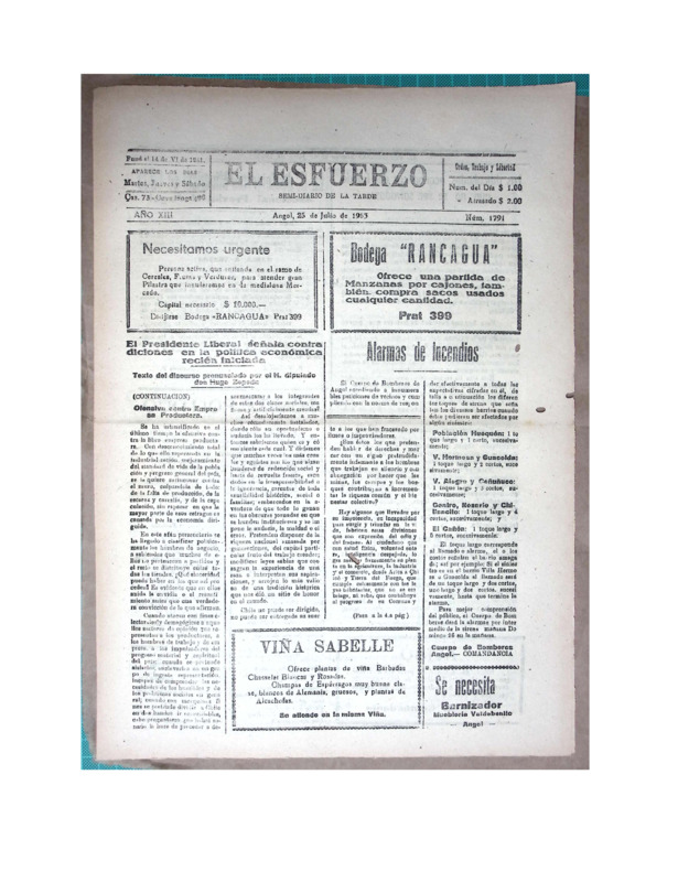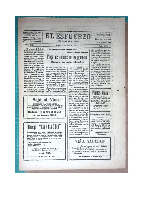 La presente colección digital reúne y preserva ejemplares de los periódicos El Colono (desde 1986) El Esfuerzo, de Angol (desde 1953 ) y Las Noticias, Periódico Liberal, de Victoria (desde el año 1916).
