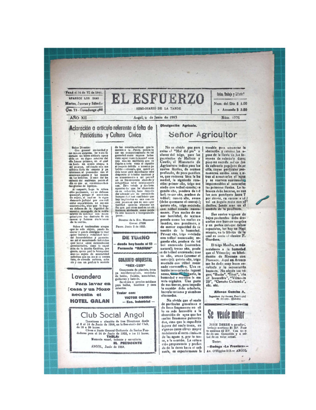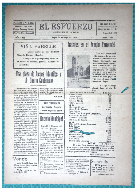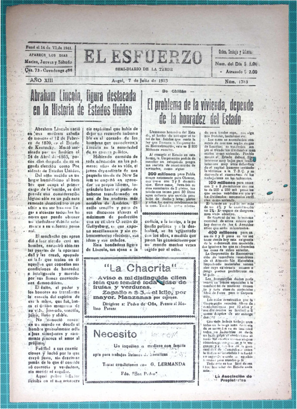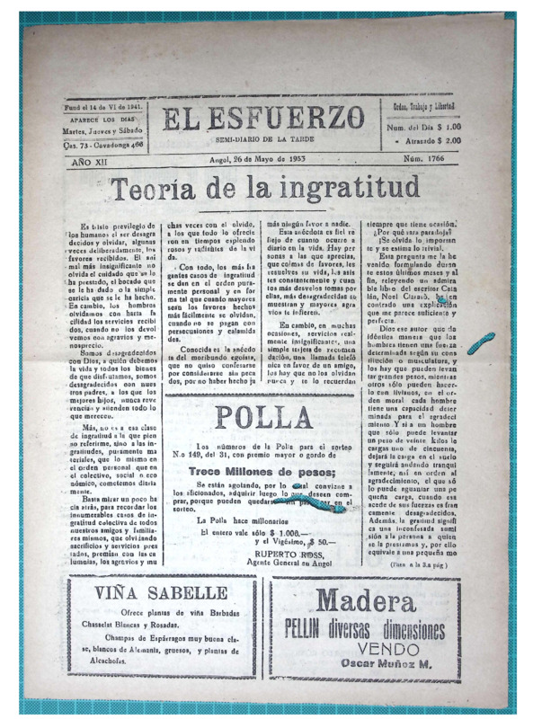 La presente colección digital reúne y preserva ejemplares de los periódicos El Colono (desde 1986) El Esfuerzo, de Angol (desde 1953 ) y Las Noticias, Periódico Liberal, de Victoria (desde el año 1916).