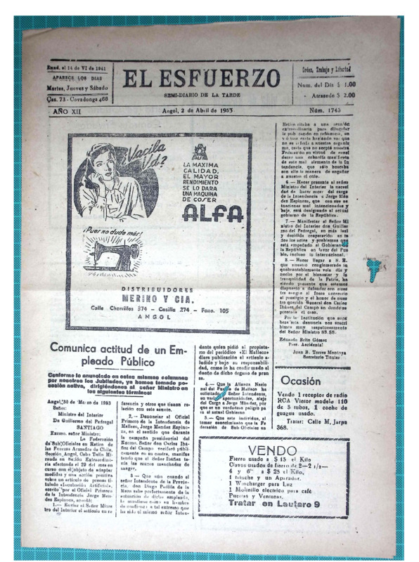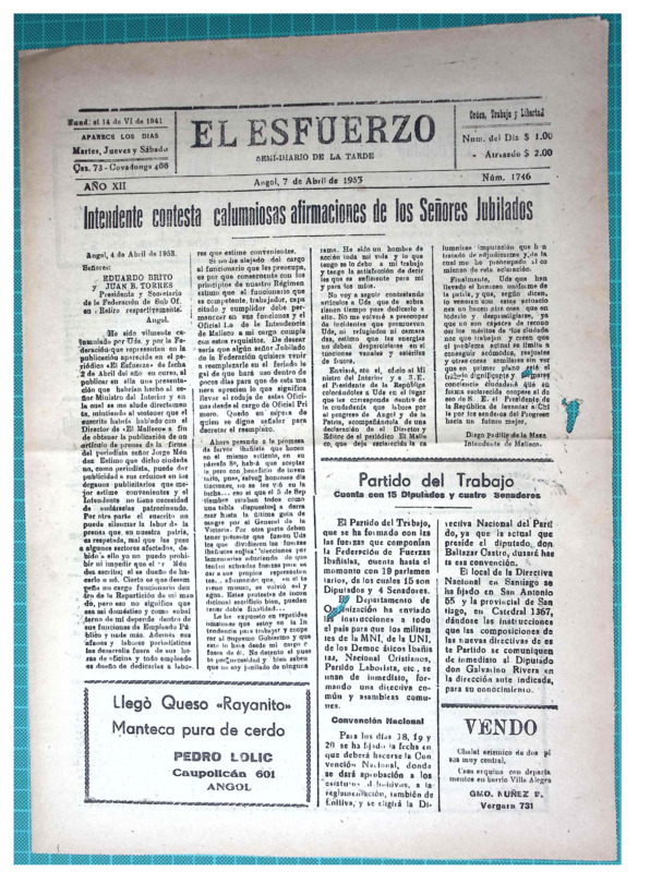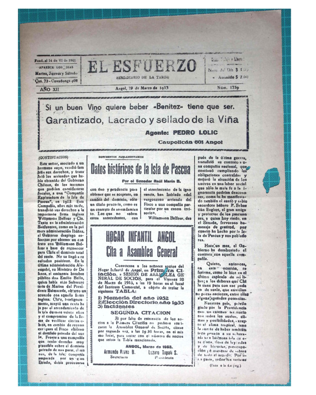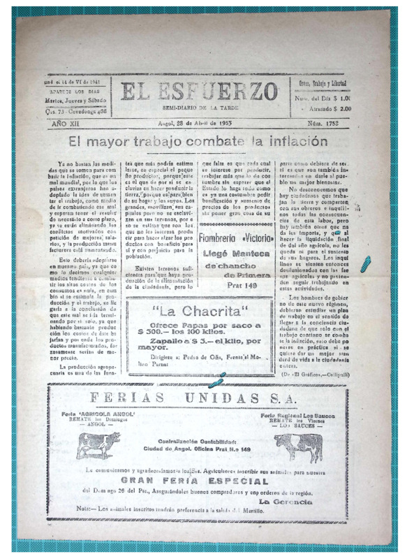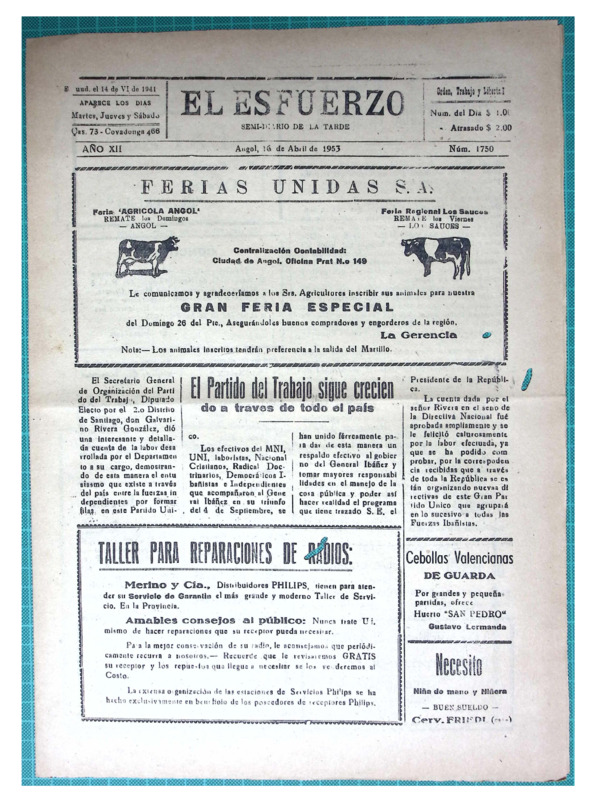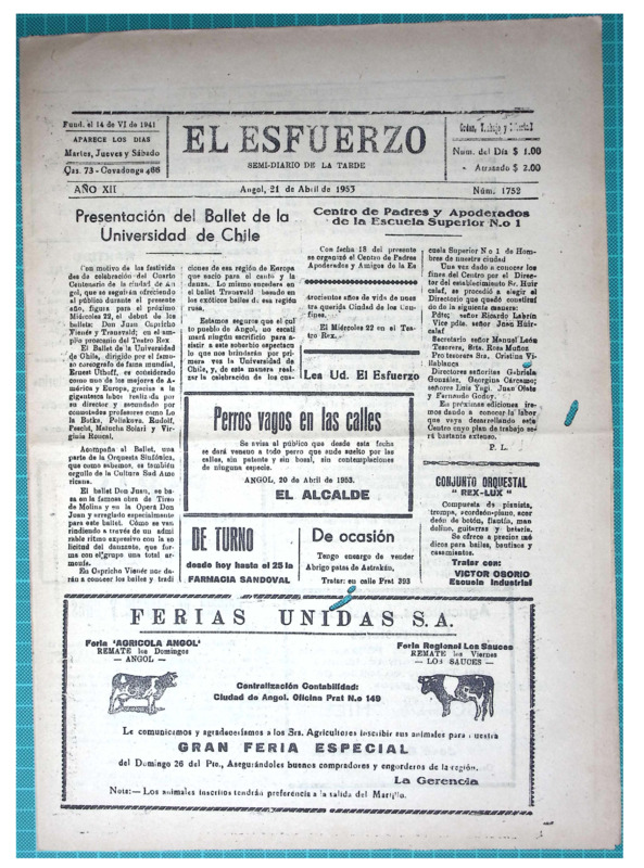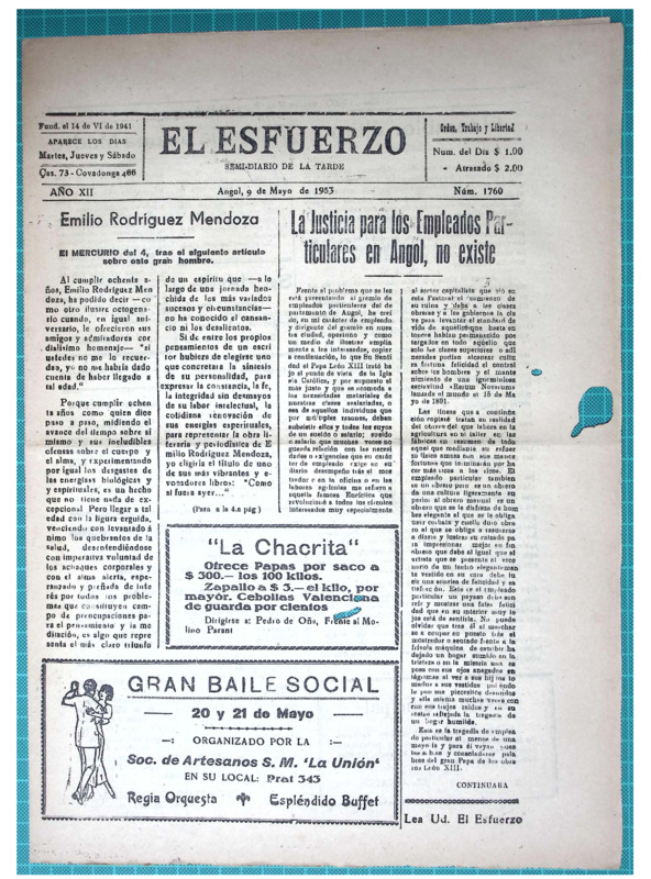 La presente colección digital reúne y preserva ejemplares de los periódicos El Colono (desde 1986) El Esfuerzo, de Angol (desde 1953 ) y Las Noticias, Periódico Liberal, de Victoria (desde el año 1916).