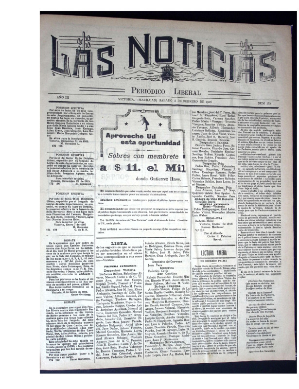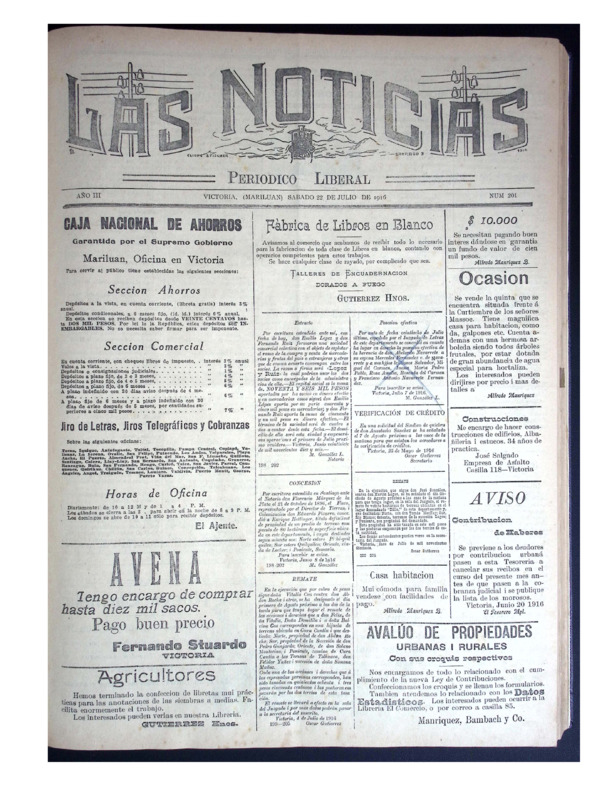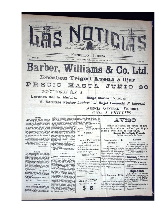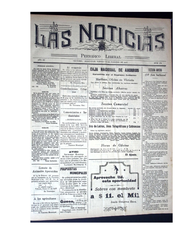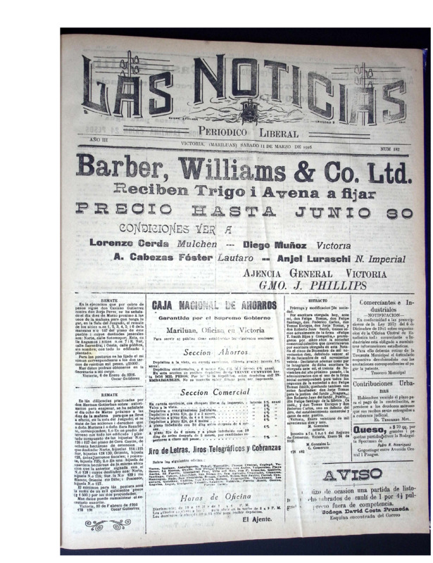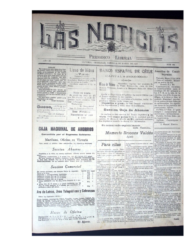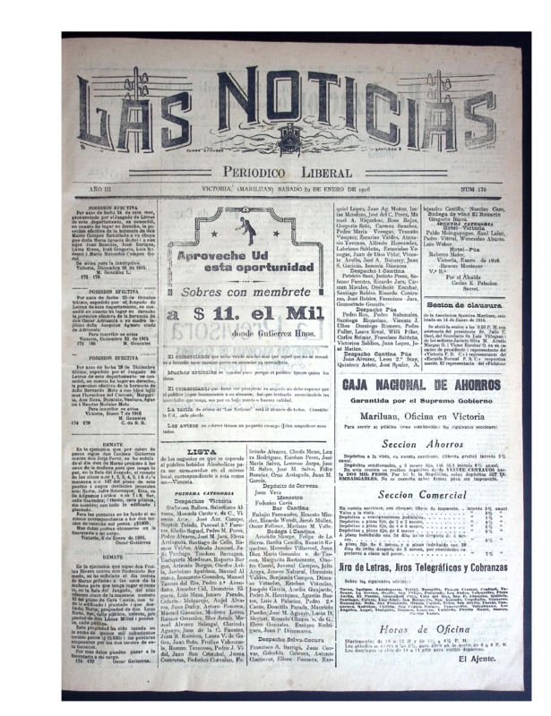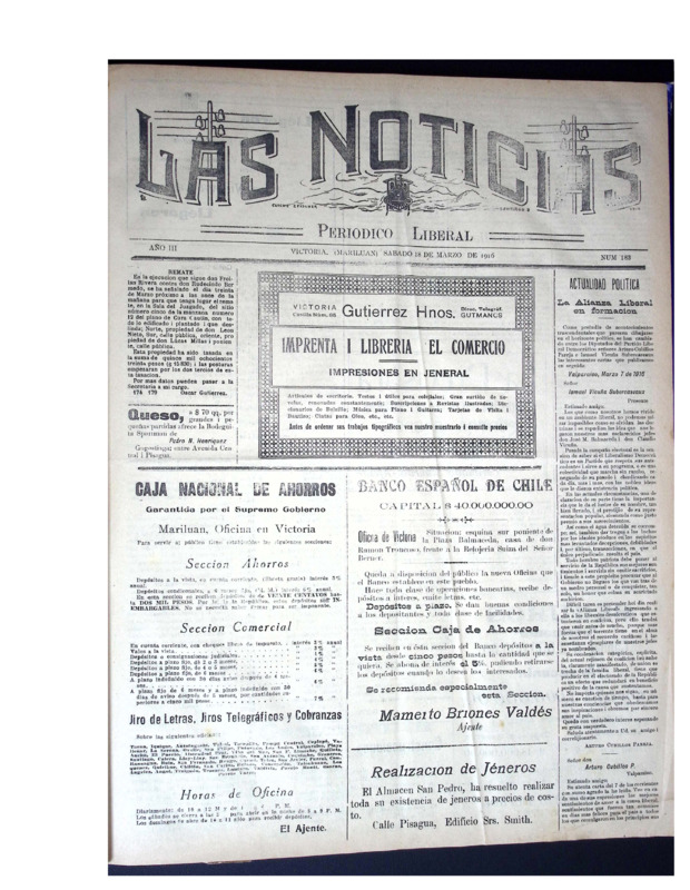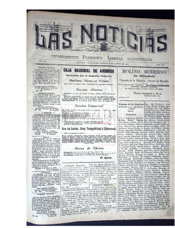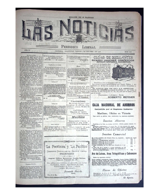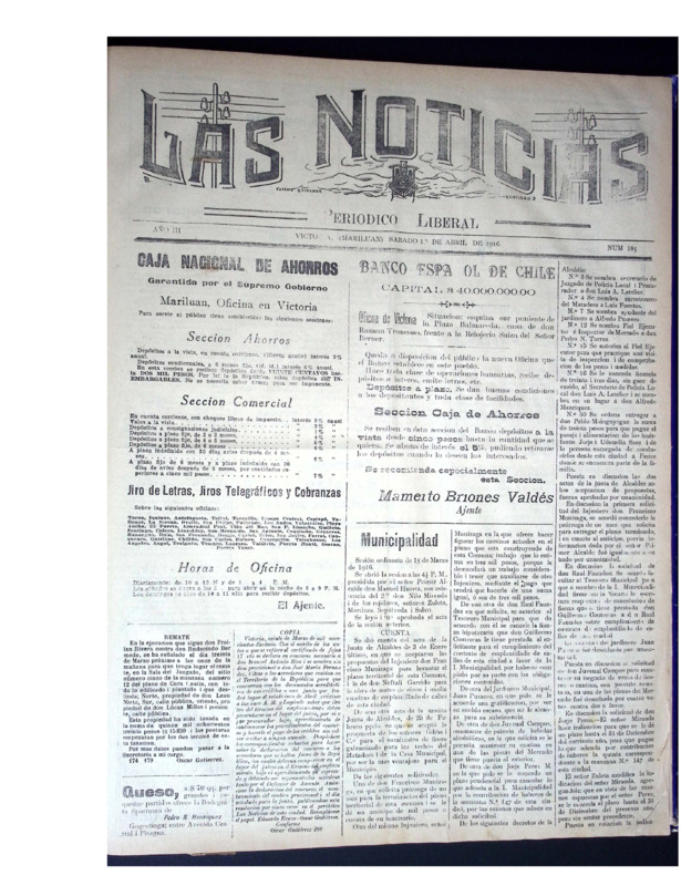 En tanto, Las Noticias, periódico aún vigente de la provincia de Malleco, reúne ejemplares publicados a principios del siglo XX. Este periódico documenta la vida política, social, económica y cultural del sur de Chile, con especial énfasis en la actividad cívica, el debate electoral, la educación pública, la moral familiar, el rol de la mujer, el desarrollo agrícola y las denuncias ciudadanas. Constituye una fuente invaluable para la historia regional y el estudio de las transformaciones sociales y políticas del siglo pasado.
