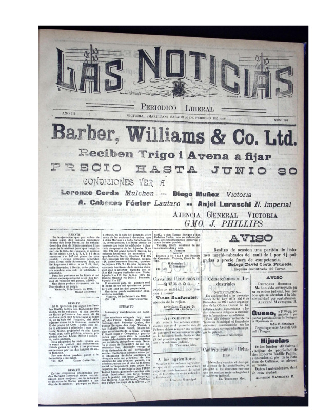 La presente colección digital reúne y preserva ejemplares de los periódicos El Colono (desde 1986) El Esfuerzo, de Angol (desde 1953 ) y Las Noticias, Periódico Liberal, de Victoria (desde el año 1916).