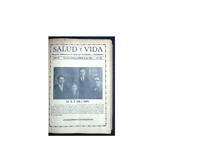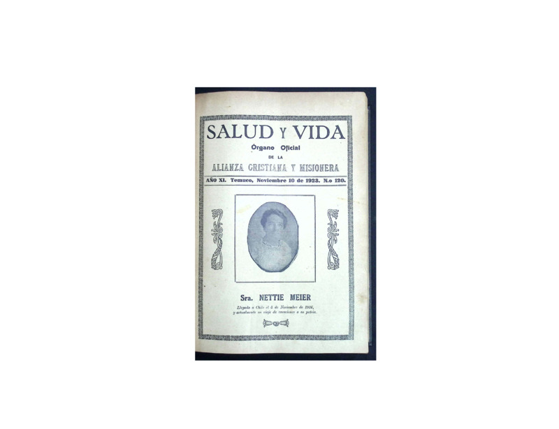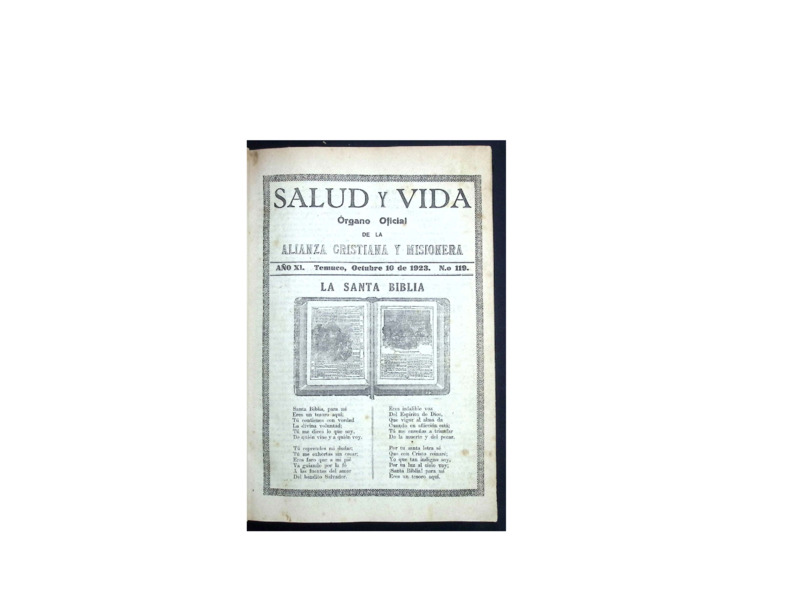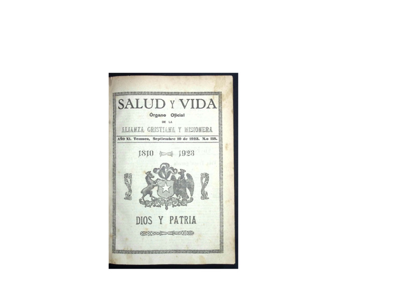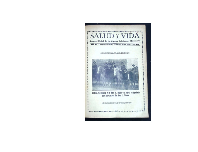 Esta colección reúne los números digitalizados de la revista Salud y Vida, revista mensual de carácter religioso editada y publicada por la Iglesia Alianza Cristiana y Misionera que circuló en la Región de La Araucanía y otras zonas del sur de Chile a comienzos del siglo XX. A través de sus páginas, esta revista no solo difundió contenidos doctrinales y devocionales, sino que también funcionó como crónica de la obra evangelizadora y misionera en contextos indígenas, rurales y urbanos del país, además de registrar el accionar de esta denominación en otras partes del mundo.
